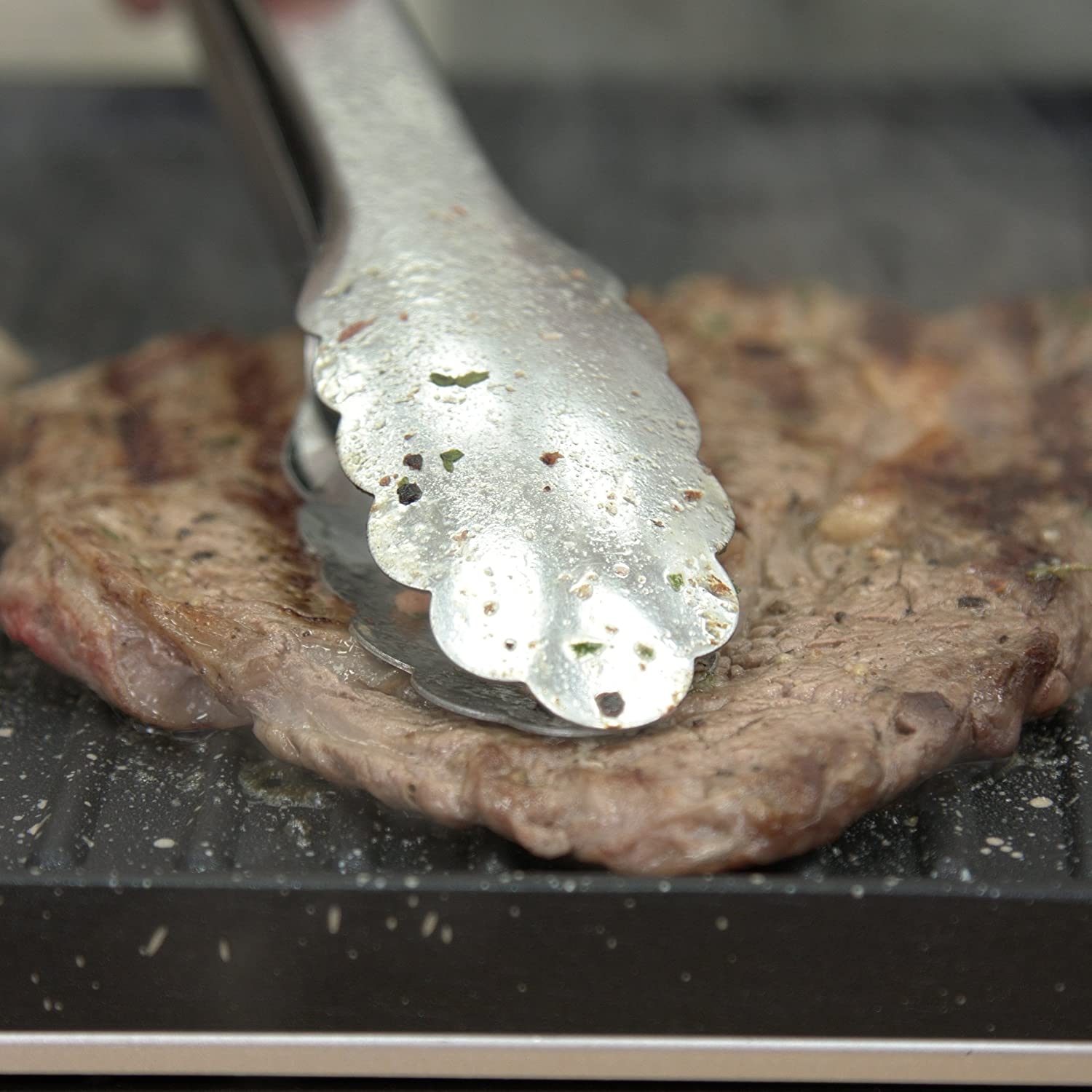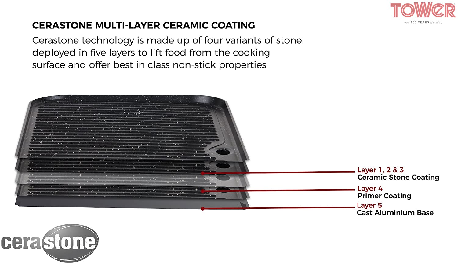 Its adjustable thermostat and power-on indicator allow for more efficient and precise grilling, whilst its ridged plates help give each item the authentic grilled look.
