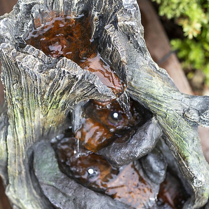 Get your Ambience On! Modern, elegant & luxurious - Woodlands Twist water fountain feature set with warm white LEDs in a moulded brown & green wooden effect.