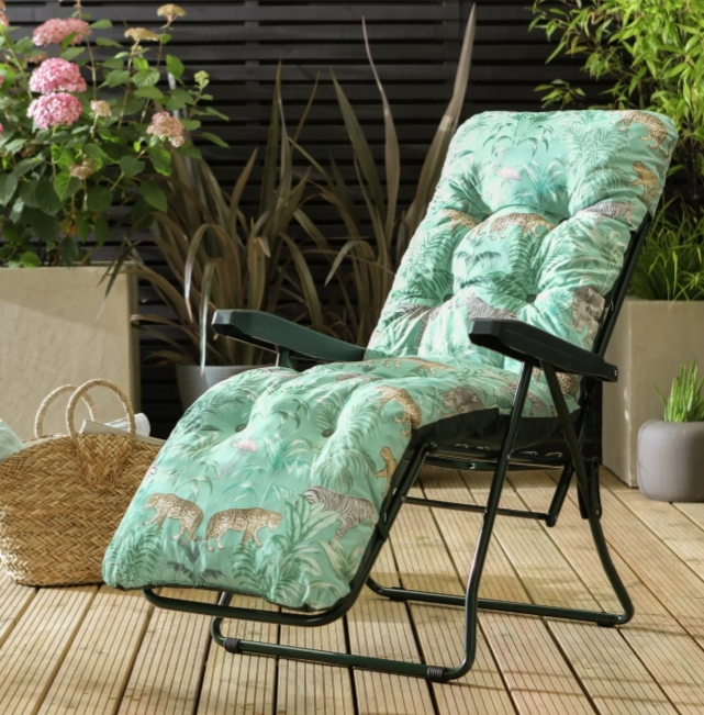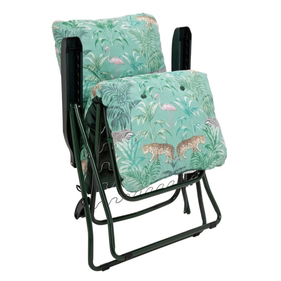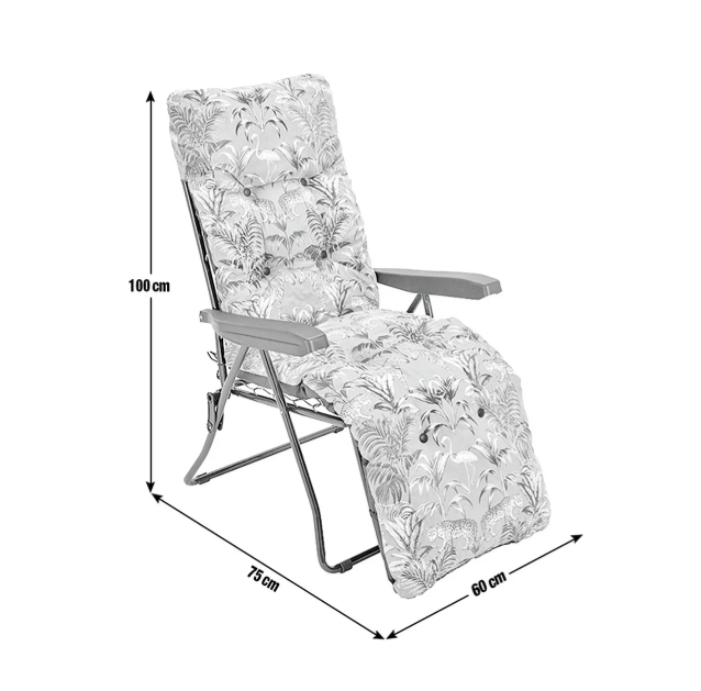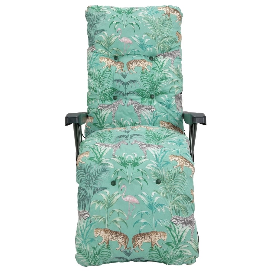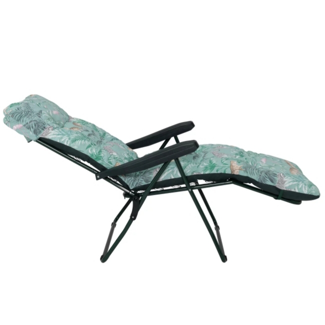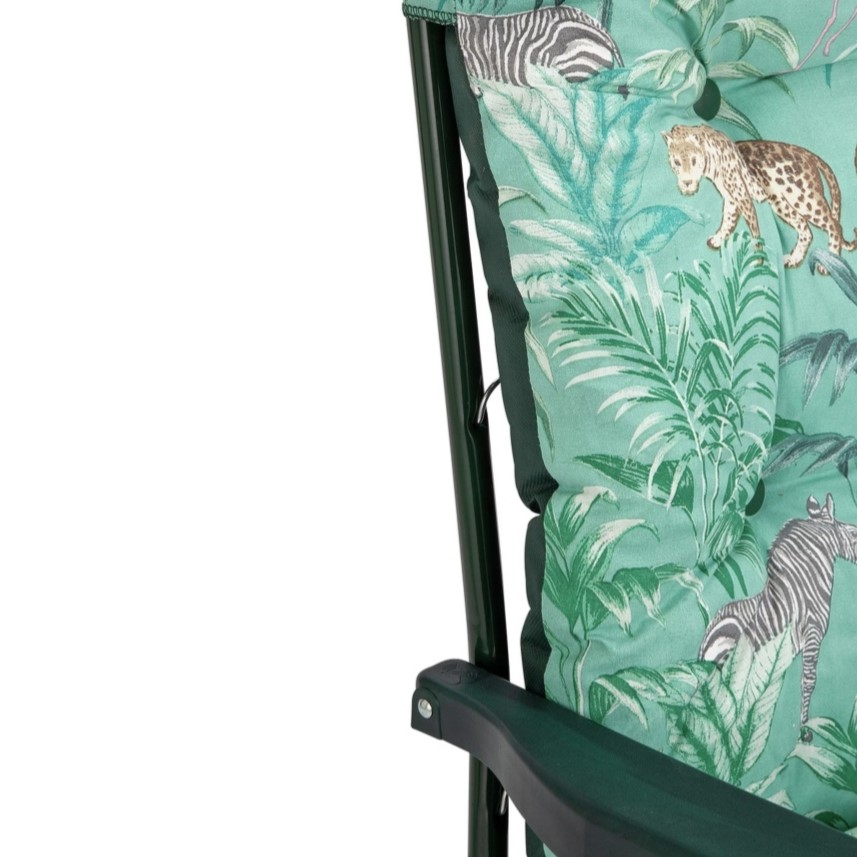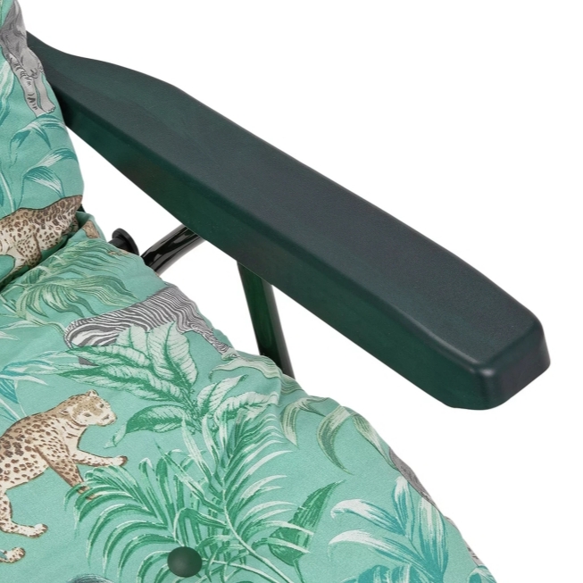 Go wild for our Home Wilderness Jungle sun lounger. It will happily accompany you on those long lazy summer days. You can enjoy a touch of jungle fever with its playful print! This eye-catching lounger adjusts to 6 positions, to provide optimum relaxation and its plump padded cushion creates the perfect spot to stretch out and relax. When you finally manage to prise yourself away, it can be folded away for easy storage.